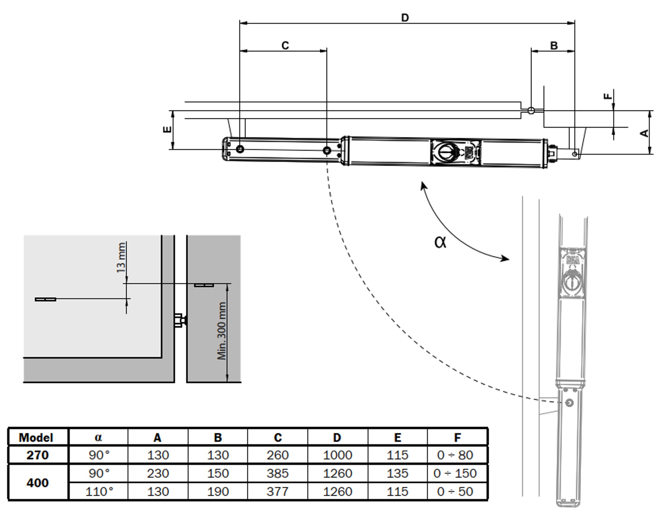 - Κατάλληλο για ανοίγματα με μήκος φύλλου πόρτας έως 2 m και βάρος έως 500 κιλά.